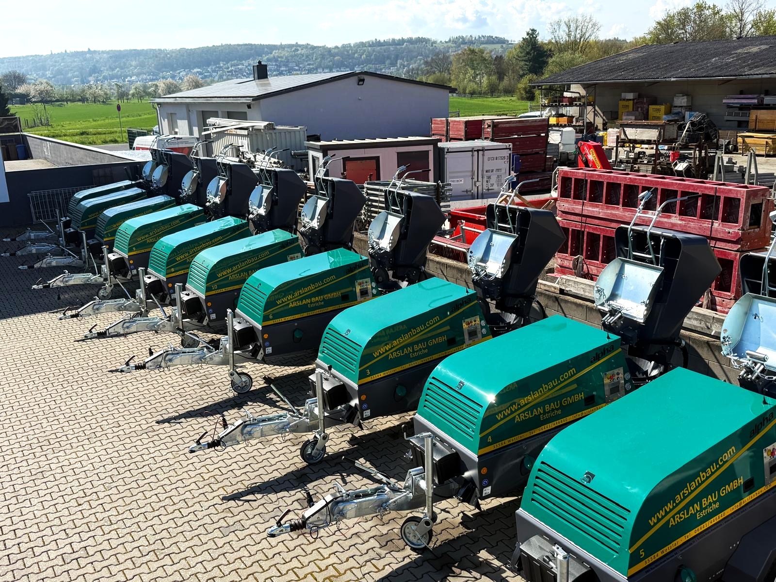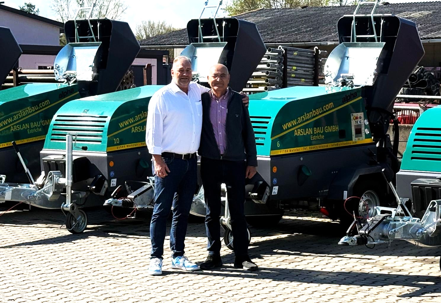 Die Firma Arslan Bau aus Wetzlar hat ihren Maschinenpark vollständig erneuert: 10 neue alpha CR-Estrichmaschinen wurden am Firmensitz an Geschäftsführer Hidir Arslan durch Frank Motsakos (BMS-Vertrieb) übergeben.